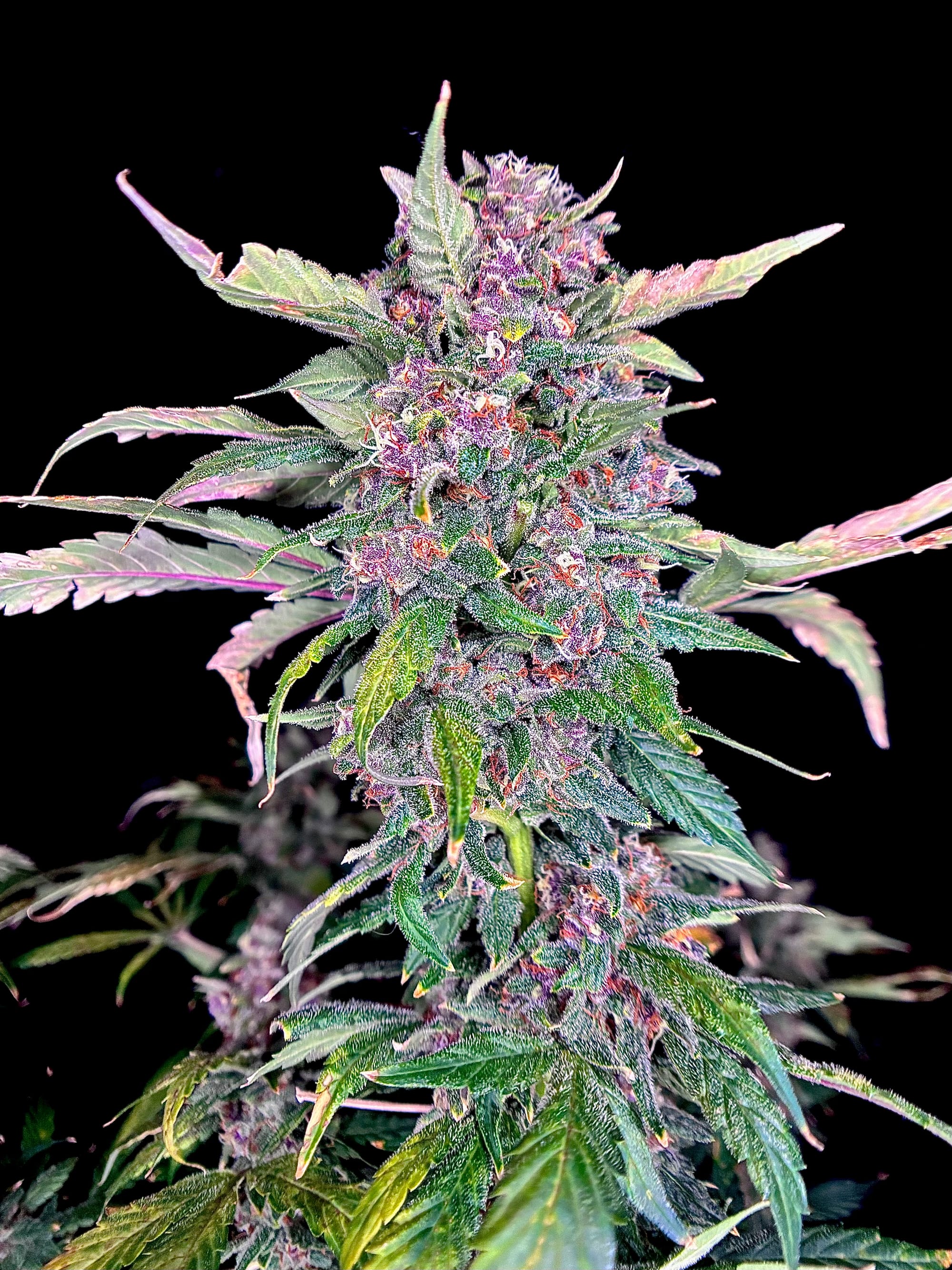 🪻Bud Structure: The most striking detail was the splashes of purple coloration throughout the colas. Good trichome coverage. Average to above average bud density. Easy trim job despite having a decent amount of foliage.